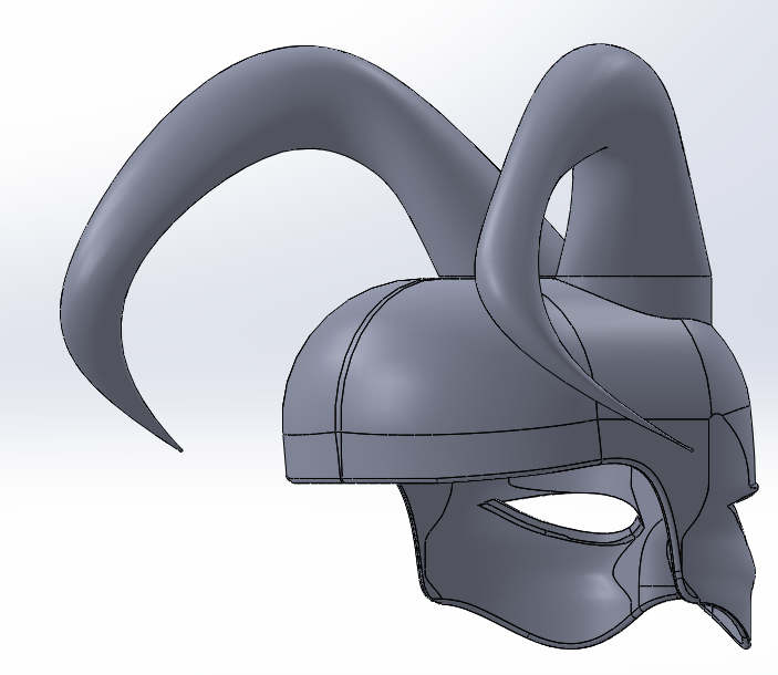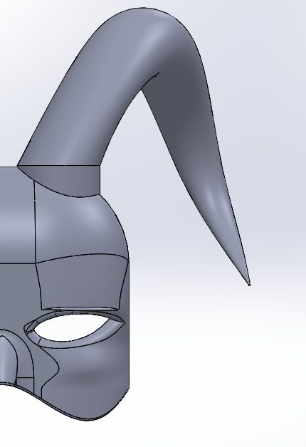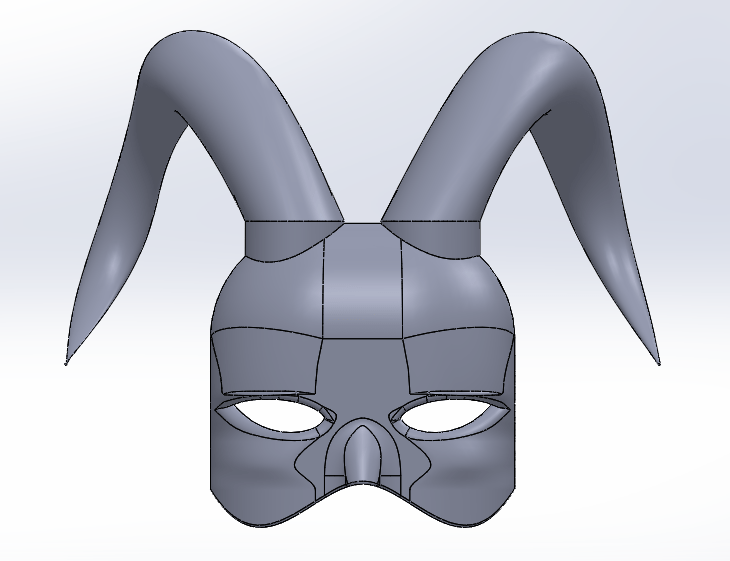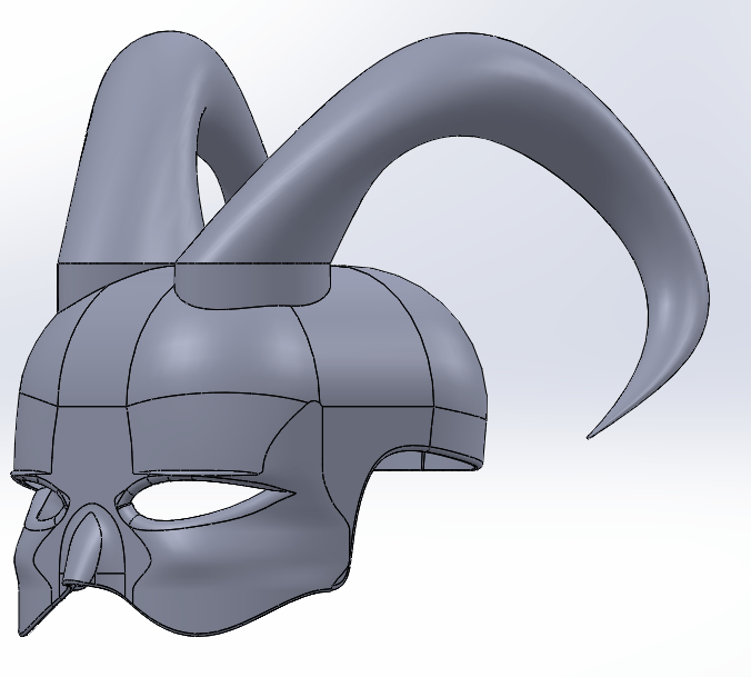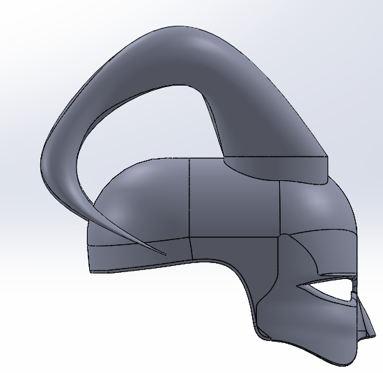 This project consisted of creating an animal mask and was one of the first, complex shapes I created in Solid Works. It represents a milestone that I surpassed while working towards becoming fluent in Solid Works. At the time, the organic shapes associated with this mask, were overwhelming and required persistence to complete. Below are a series of images of the drawn mask.